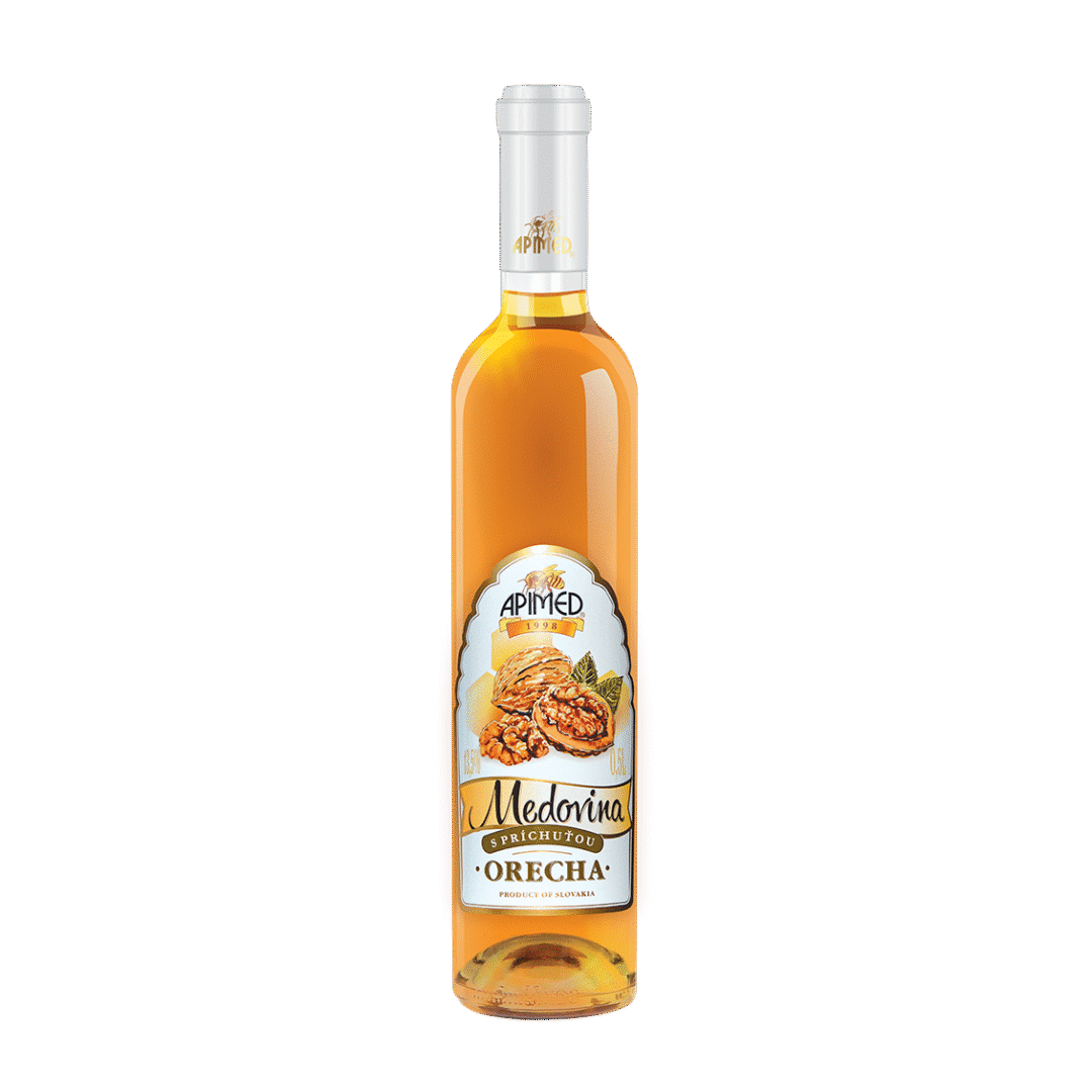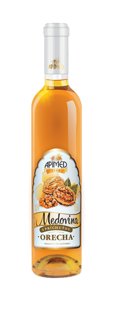Medovina s príchuťou – orecha / mandlí je vyrobená prírodným kvasením z kvetového včelieho medu. Čistá medová chuť a vôňa je podľa druhu jemne dochutená prírodnou esenciou. Alk.: 13,5% obj. (Objem: 0,5l.)