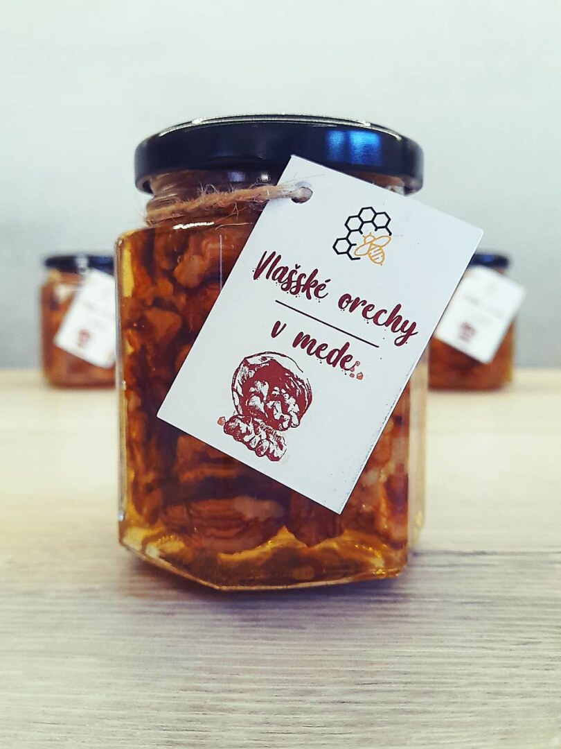 Orechy sú ideálne na mozog a srdce. Podporujú trávenie, zlepšujú plodnosť, kvalitu pokožky a vlasov, zároveň slúžia ako prevencia cukrovky. Orechy sú zaliate agátovým medom, ktorý je tekutý. Orechy jemne absorbujú jeho sladkú chuť, takže si pochutíte na zdravej dobrote. V ponuke: vlašské orechy / mandle / lieskovce / kešu. (220g)