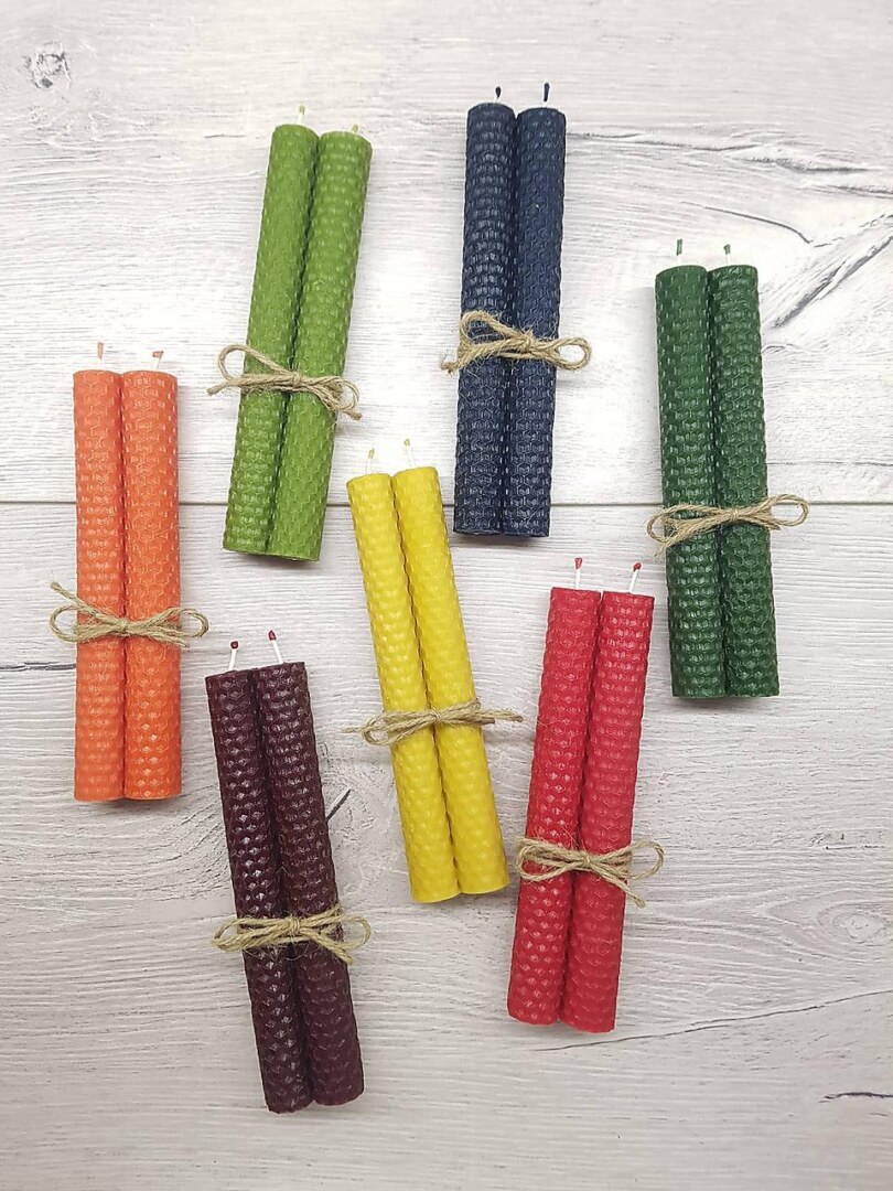 Sada 2ks sviečok s priemerom 2,1cm a výškou 18cm. Sviečky sú vhodné do svietnikov na vianočný stôl. Sviečky sú zafarbené prírodnými farbivami. V ponuke: žltá (prírodná) / červená / modrá/ bordová / oranžová / tmavozelená. Vyrobené na Slovensku.
